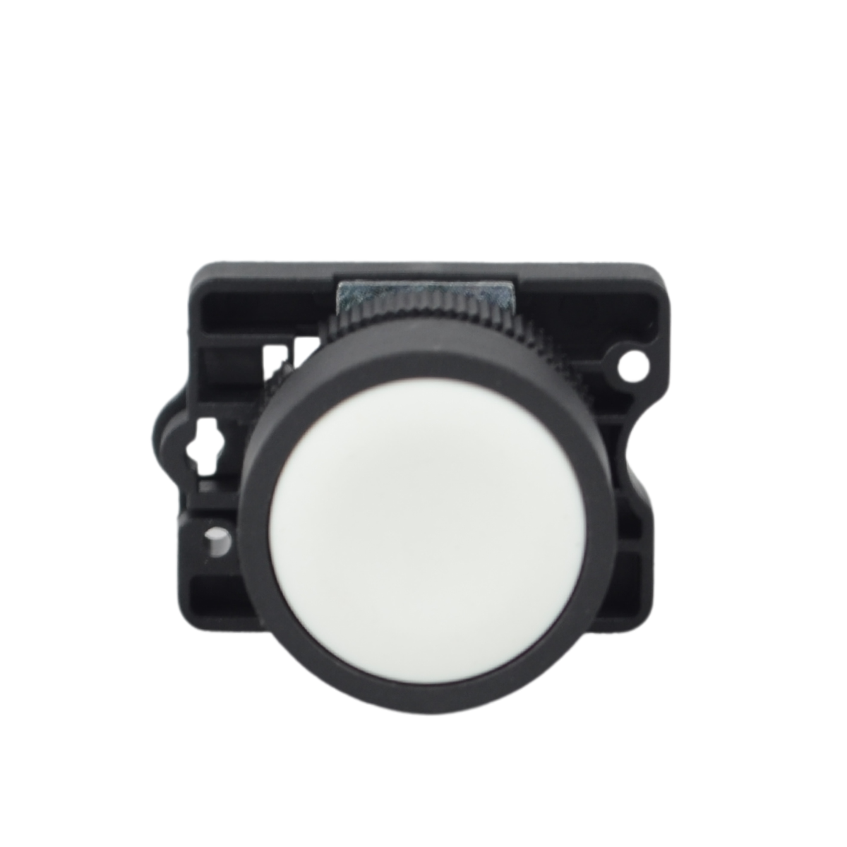 O botão de impulso é um dispositivo de acionamento momentâneo que retorna à sua posição original após ser pressionado. A versão de 22mm é padrão para montagem em painéis e gabinetes de controle. O contato 1NA (1 Normalmente Aberto) indica que o circuito será fechado (e ativado) apenas enquanto o botão estiver pressionado.