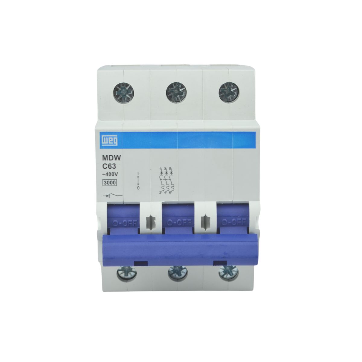 A linha de minidisjuntores MDW oferece proteção contra sobrecarga e curto-circuito, atendendo as curvas características de disparo B e C, conforme as normas NBR NM 60898 e NBR IEC 60947-2. Desenvolvida para aplicações em circuitos de baixa tensão, de corrente contínua ou alternada de 2 a 125 A, a linha têm capacidade de interrupção de curto-circuito de até 15 kA (127/220 V ca). Os minidisjuntores WEG possuem o mecanismo de disparo livre, onde o disparo independe da posição da manopla e indicação do estado do disjuntor