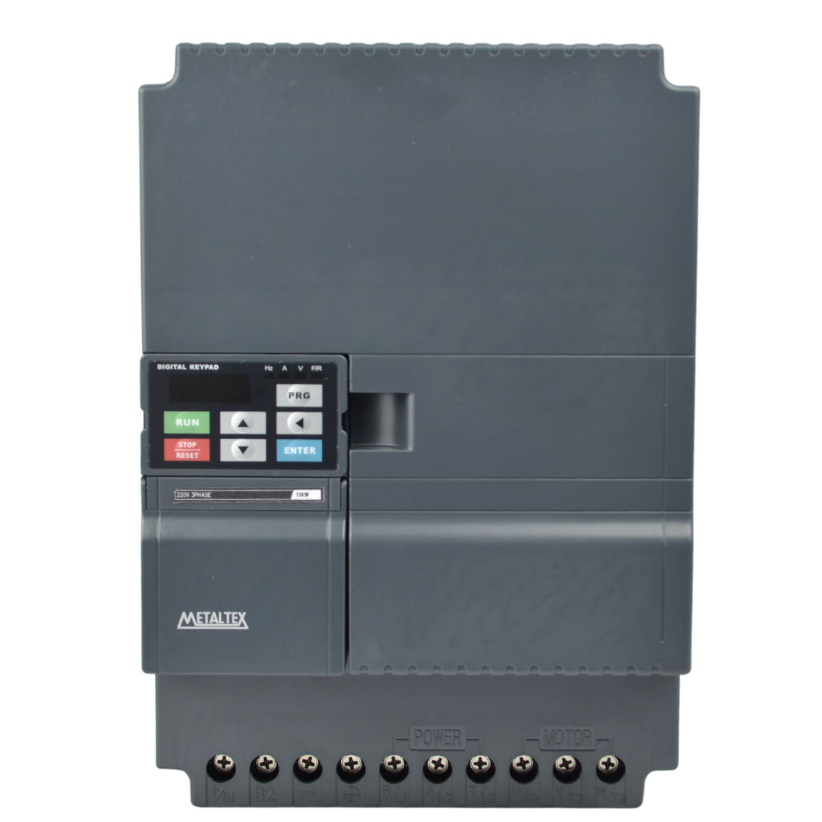 Inversor de Frequência Vetorial IF20 - METALTEX apresenta Freio DC, JOG, operação CLP, regulação automática da tensão (AVR), PID, controle de sobrecorrente e sobretensão e comunicação Modbus-RTU RS485 incorporada.